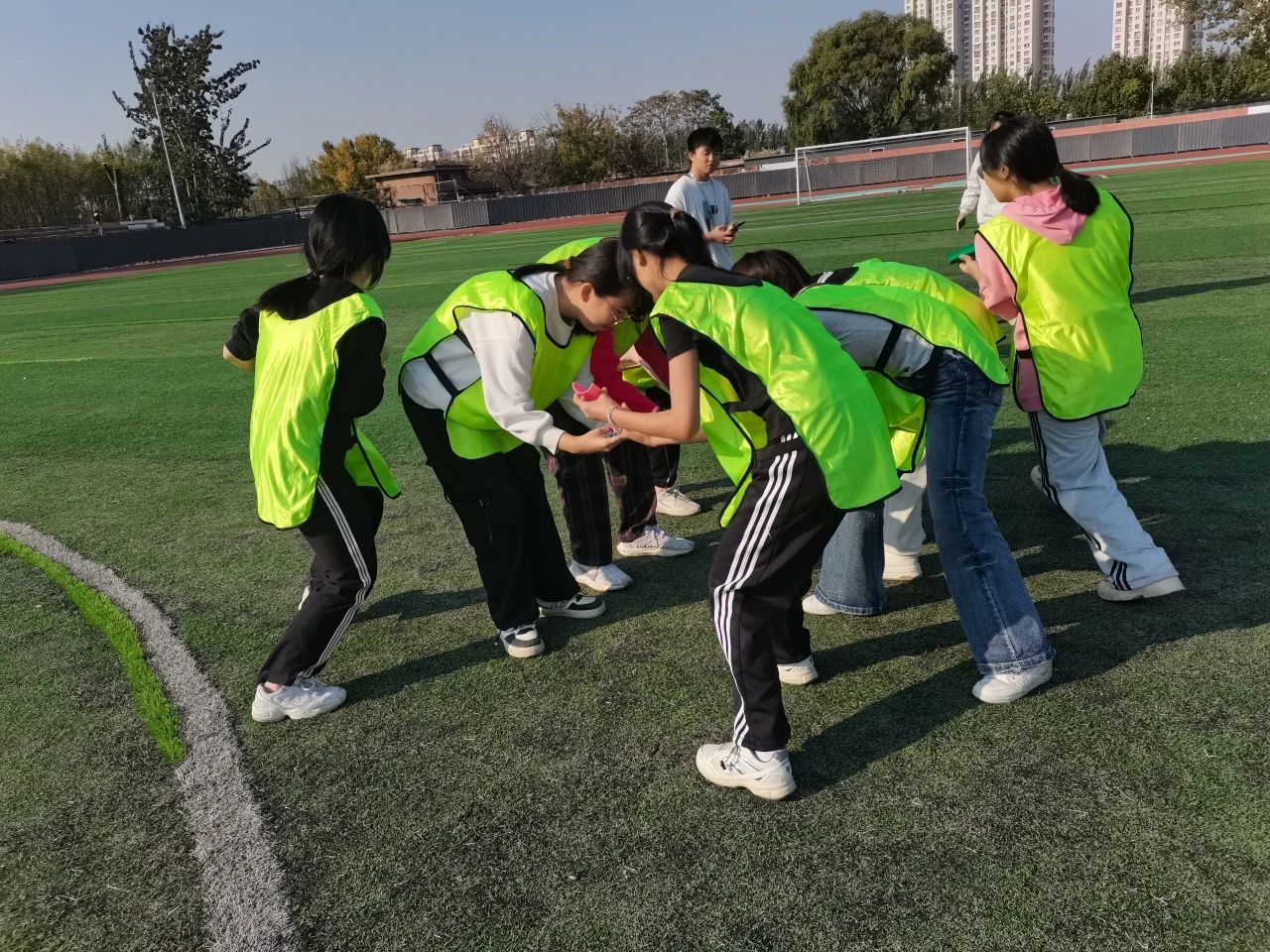 比赛现场,“袋鼠跳接力”“毛毛虫竞速”“不倒森林”“能量传输”“十人九足”……等一系列心理健康趣味活动轮番开展。同学们肆意在赛道上飞驰。他们手持长杆,步伐矫健;他们默契配合,迎接挑战;他们奔向终点,突破自我。一张张脸上洋溢着灿烂的笑容,“心理拓展”的目标在此实现。参赛队员纷纷表示,此次活动收获满满,在趣味运动中收获了快乐,压力得到了释放。